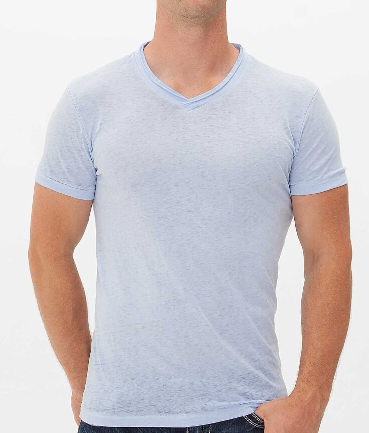 Standard fit burnout v-neck t-shirt Raw edge details